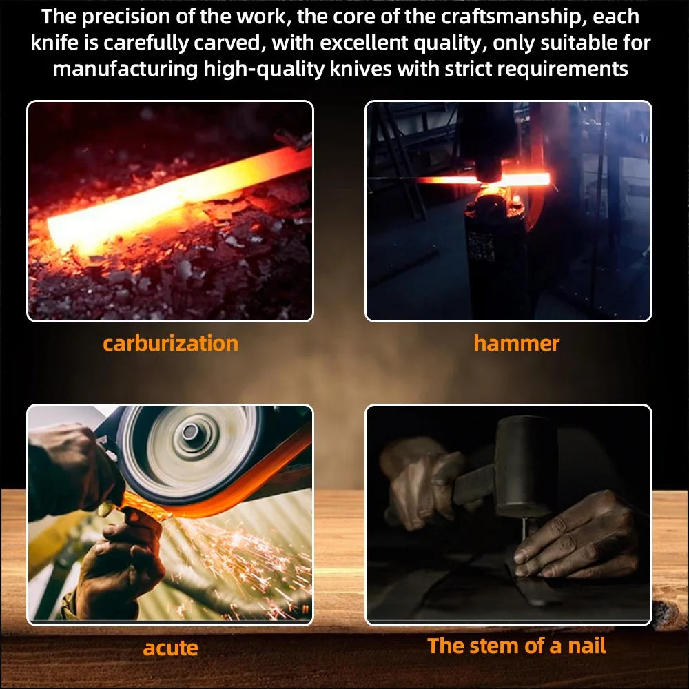 INCLUDES: 8" Chef's Knife, 8" Bread Knife, 7.5" Meat Cutter Knife, 5" Fish Sashimi Knife, 4.5″ Universal Knife, 3.5" Fruit Knife. 6- 4.5″ Steak Knife, Scissors, Sharpening Stick, Knife Holder